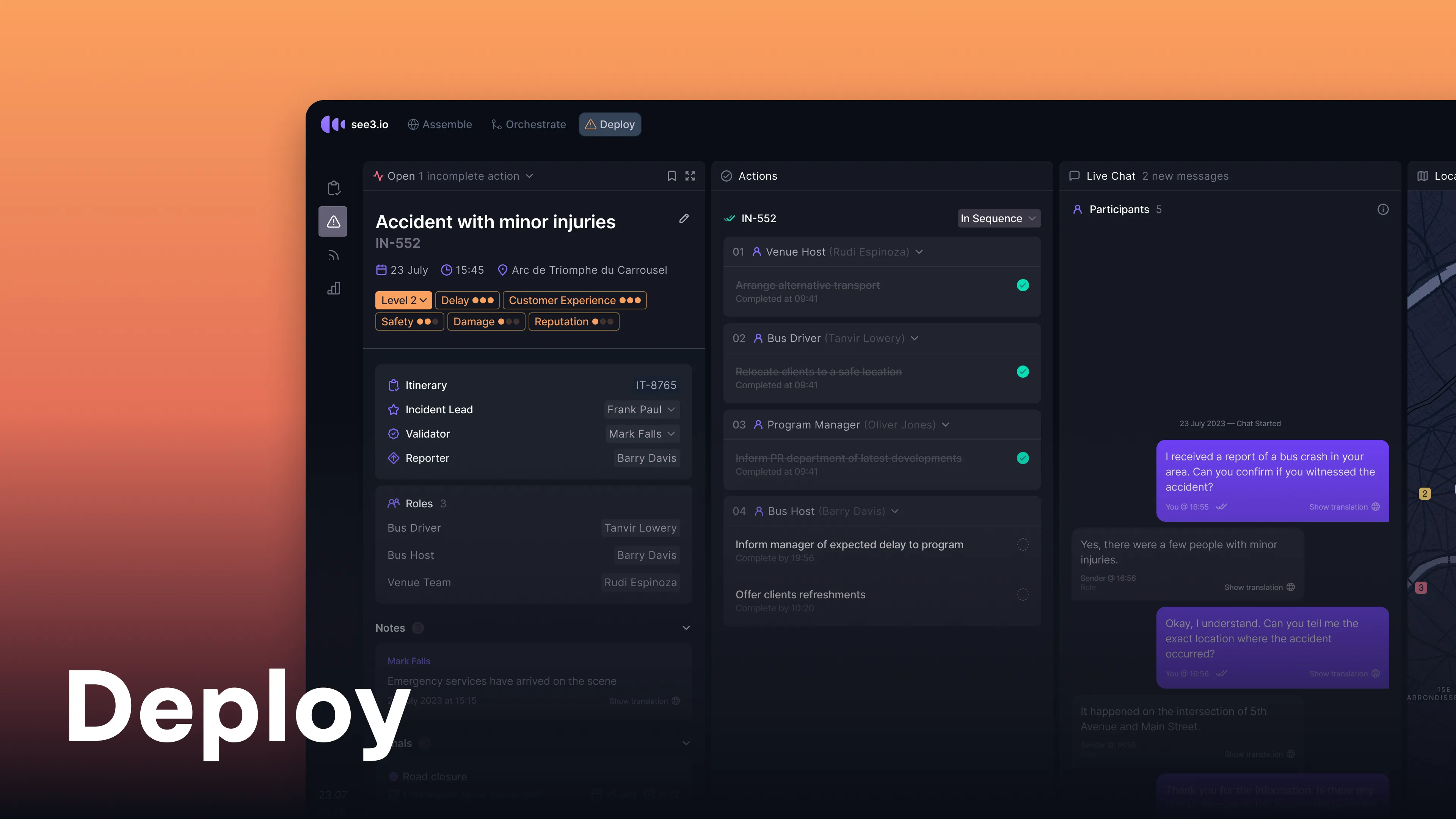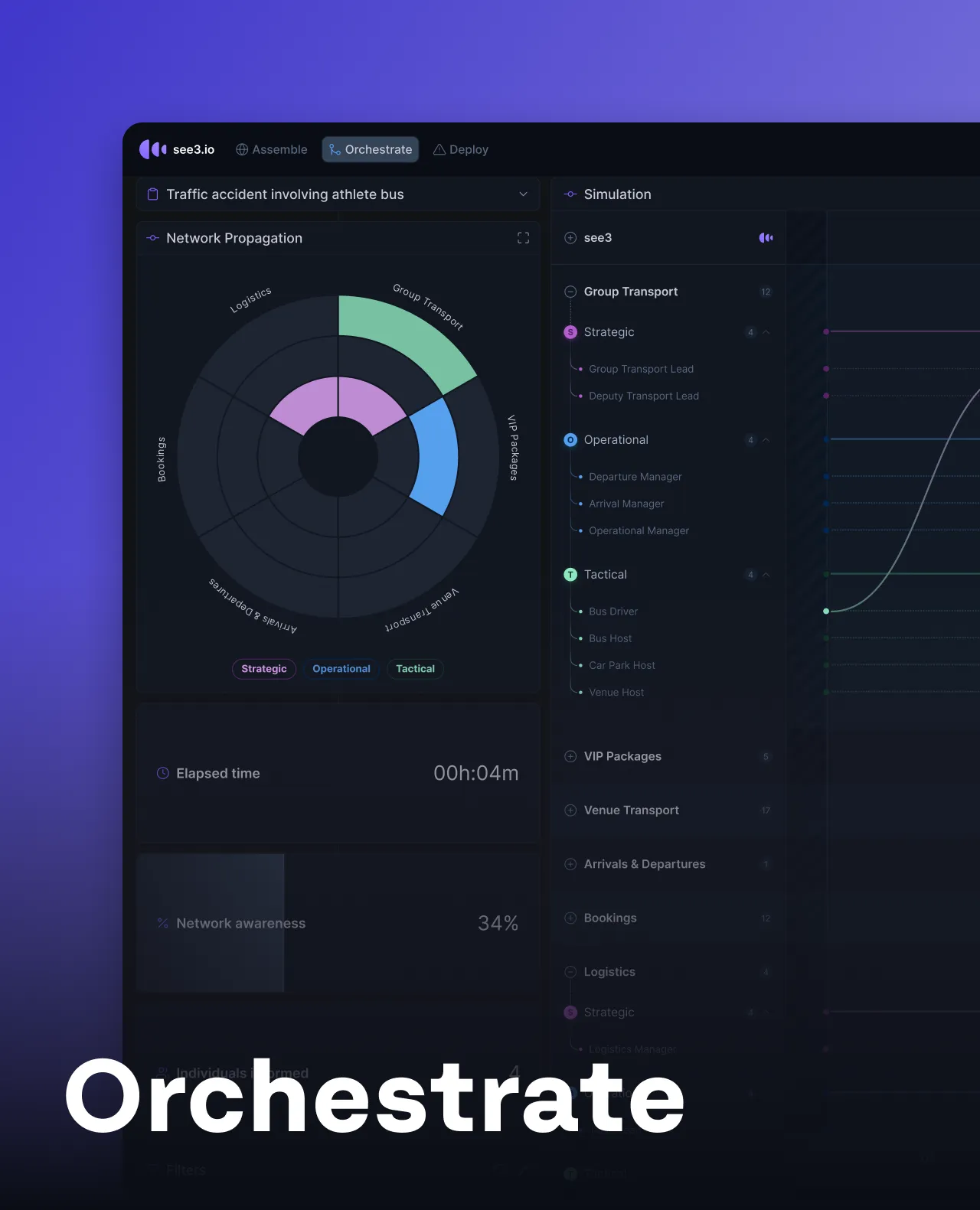 The resulting platform, see3, enables organisers to build and visualise operational networks, define interaction rules, and manage incidents through a single interface. It combines schematic mapping, scenario orchestration, and live operational tools to keep communication clear and consistent across entities, agencies, and control centres. Launched at the Paris 2024 Olympics, see3 helped maintain city-wide situational awareness for transport operations - anticipating and responding to issues quickly and safely.