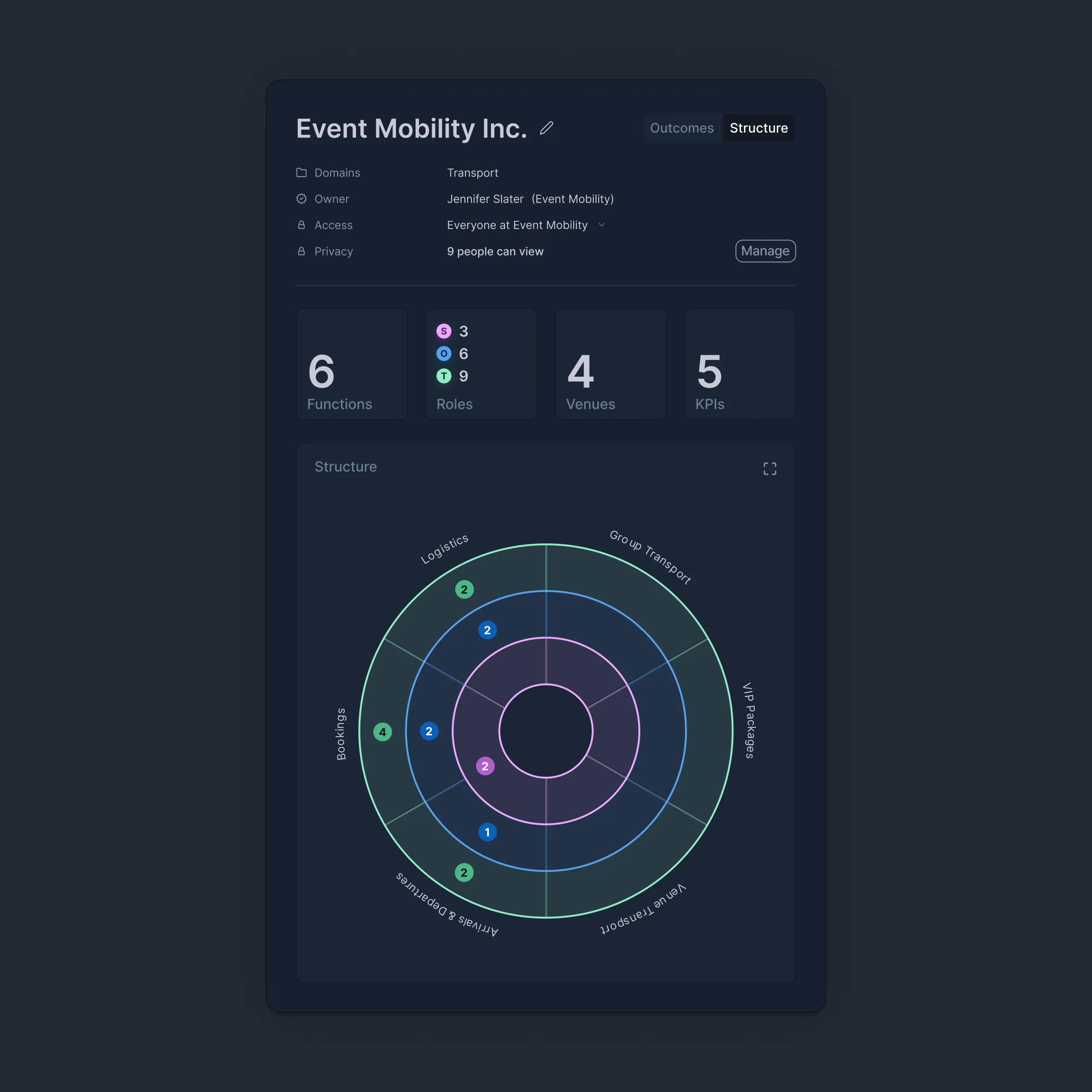 I oversaw delivery of the product, from initial business case through design and concept development to deployment, defining how complex organisational structures, workflows, and decision hierarchies could be modelled in an intuitive, visual interface. Alongside shaping the business logic and experience architecture, I led a distributed team - aligning creative, technical, and operational workstreams to ensure the platform delivered on both vision and practical utility.